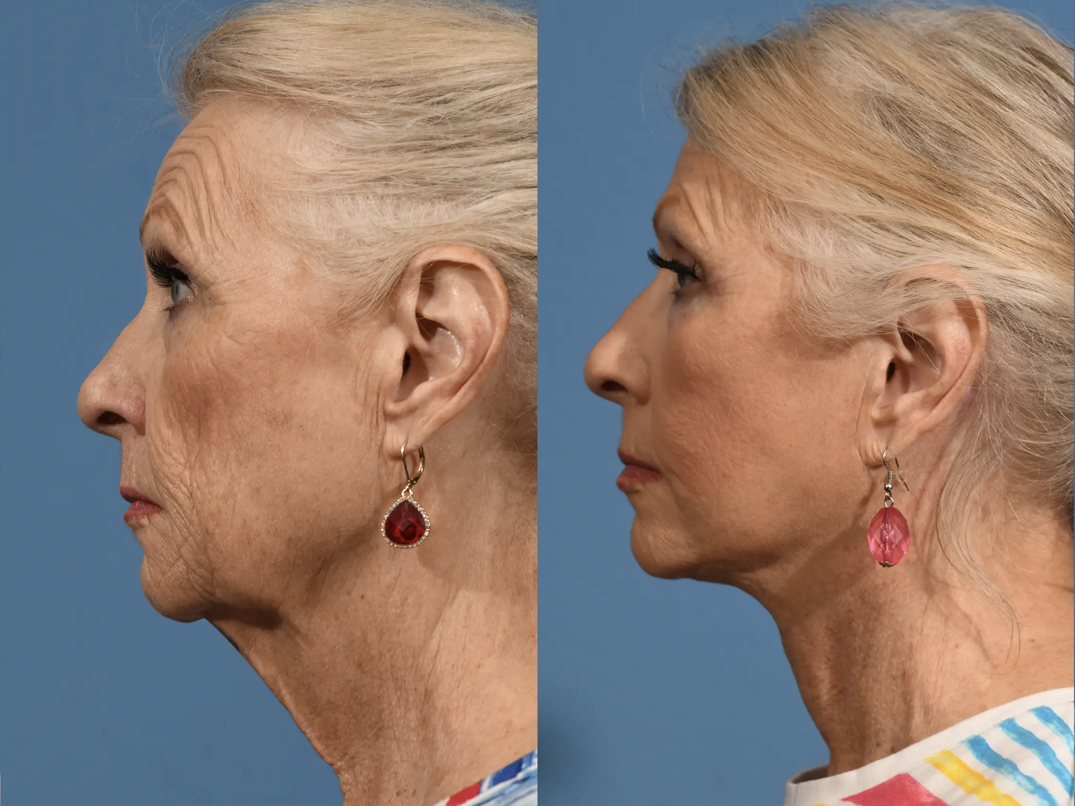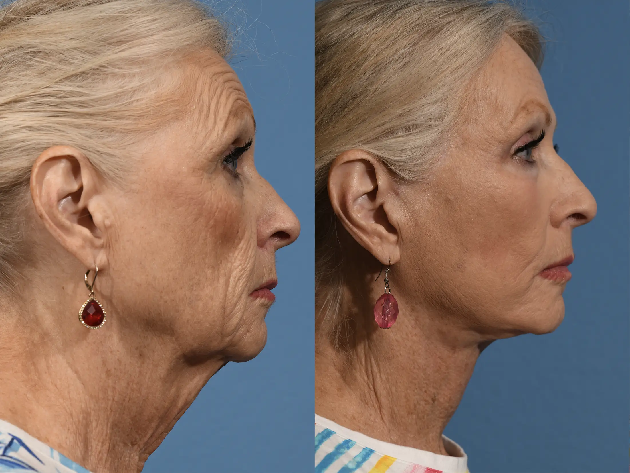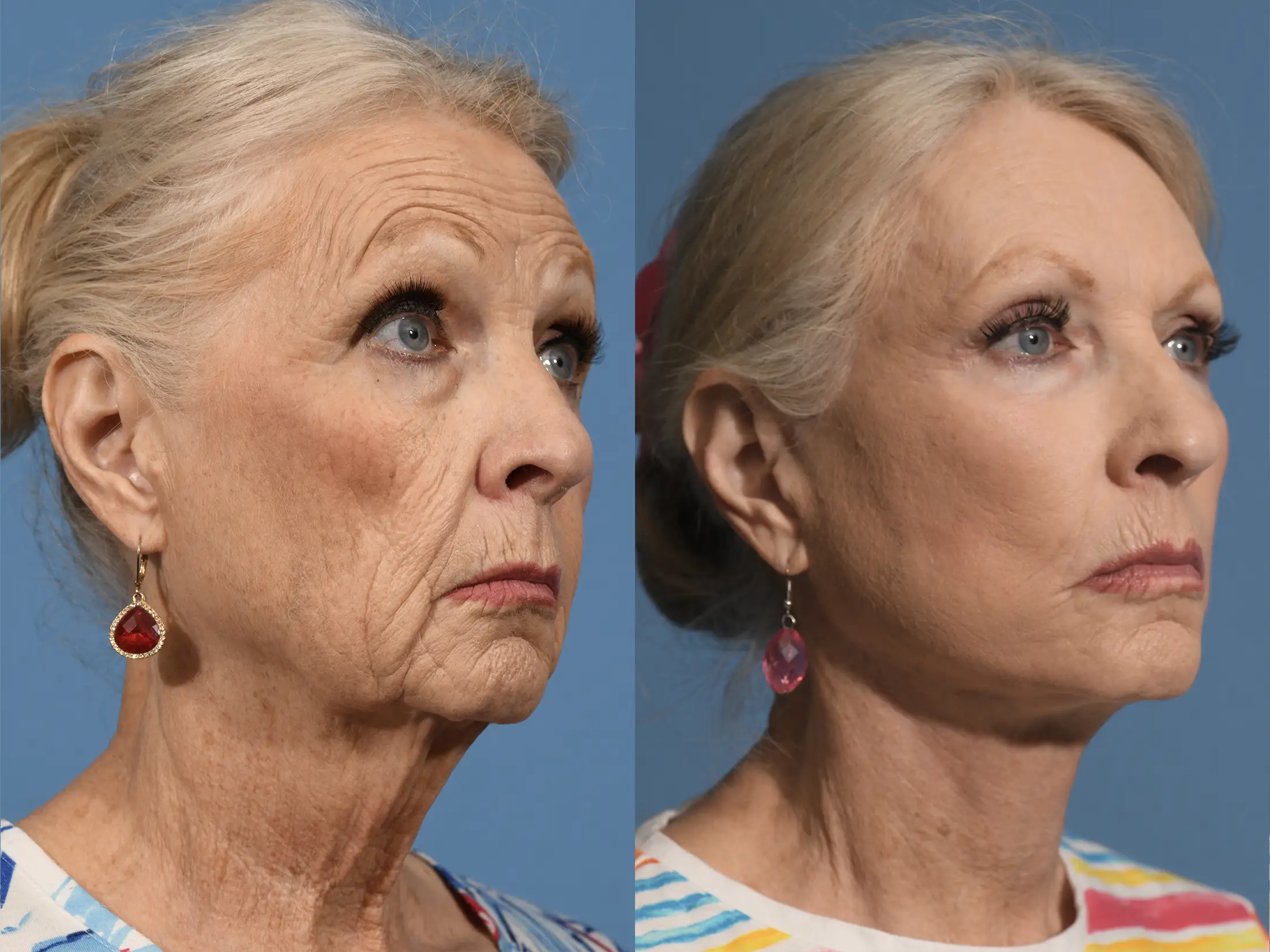 This 73 year old lovely patient had a deep plane facelift with a TCA chemical peel. She came to us wanting a refreshed, natural look- and is extremely happy with her results!